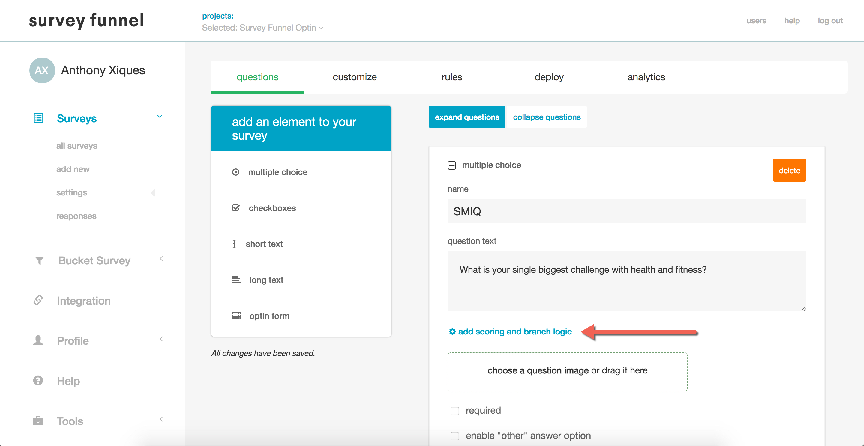 And you probably guessed it - we’re going to use Branch Logic so that based on the answer to the first question (finding out what their biggest challenge is), we’ll show them a textarea question that lets the person taking the survey provide additional details.