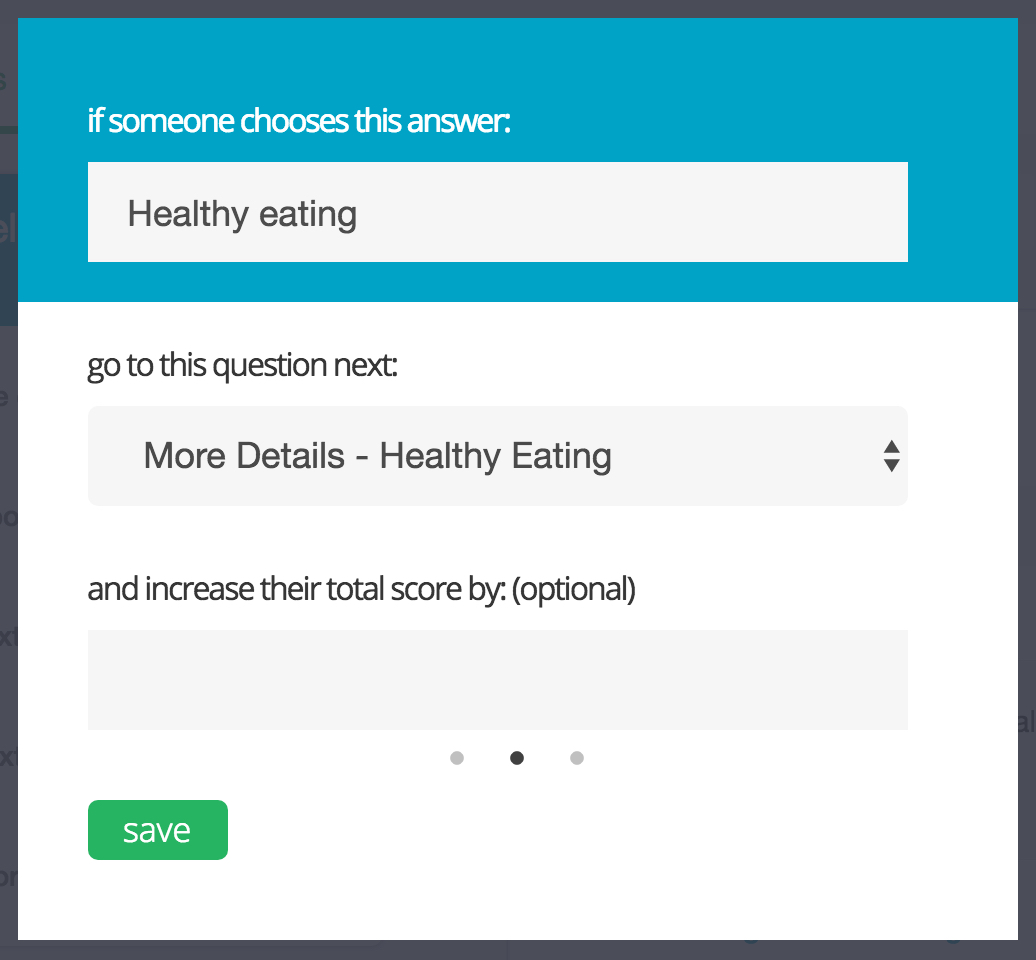 And in the lightbox that opens, choose what question to show the person taking the survey based on each answer choice: