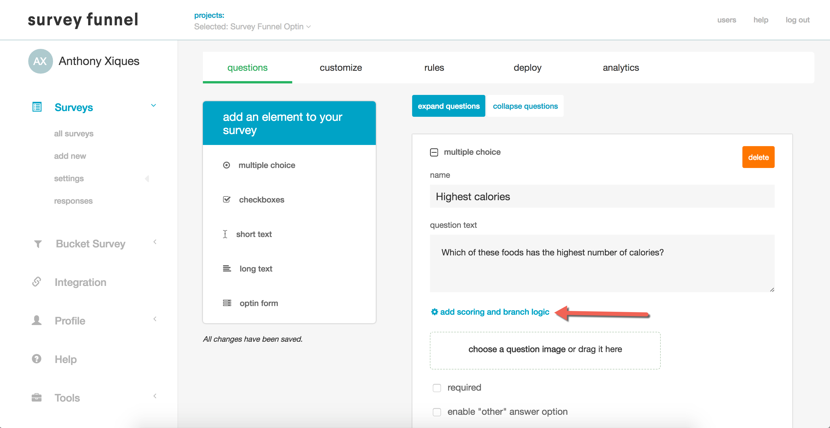 And now for the fun part! Click on “Add Scoring and Branch Logic” for each of the first two questions: